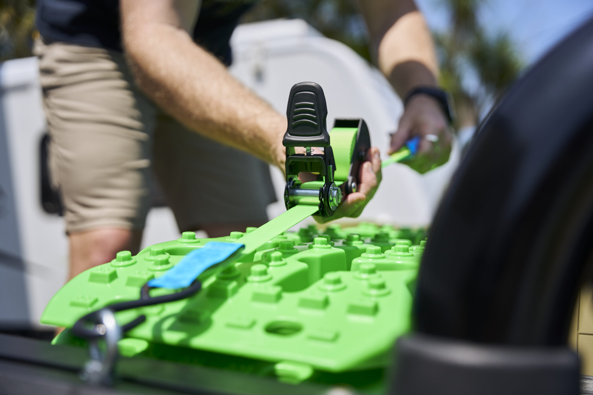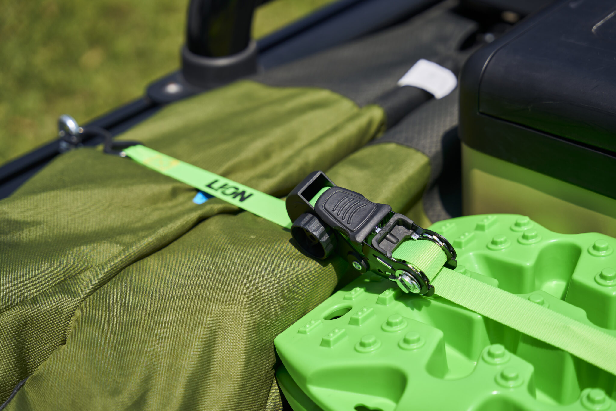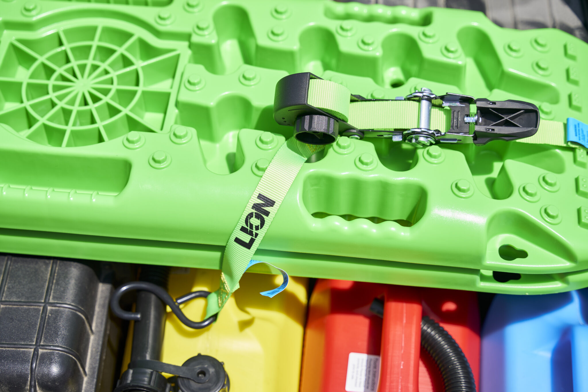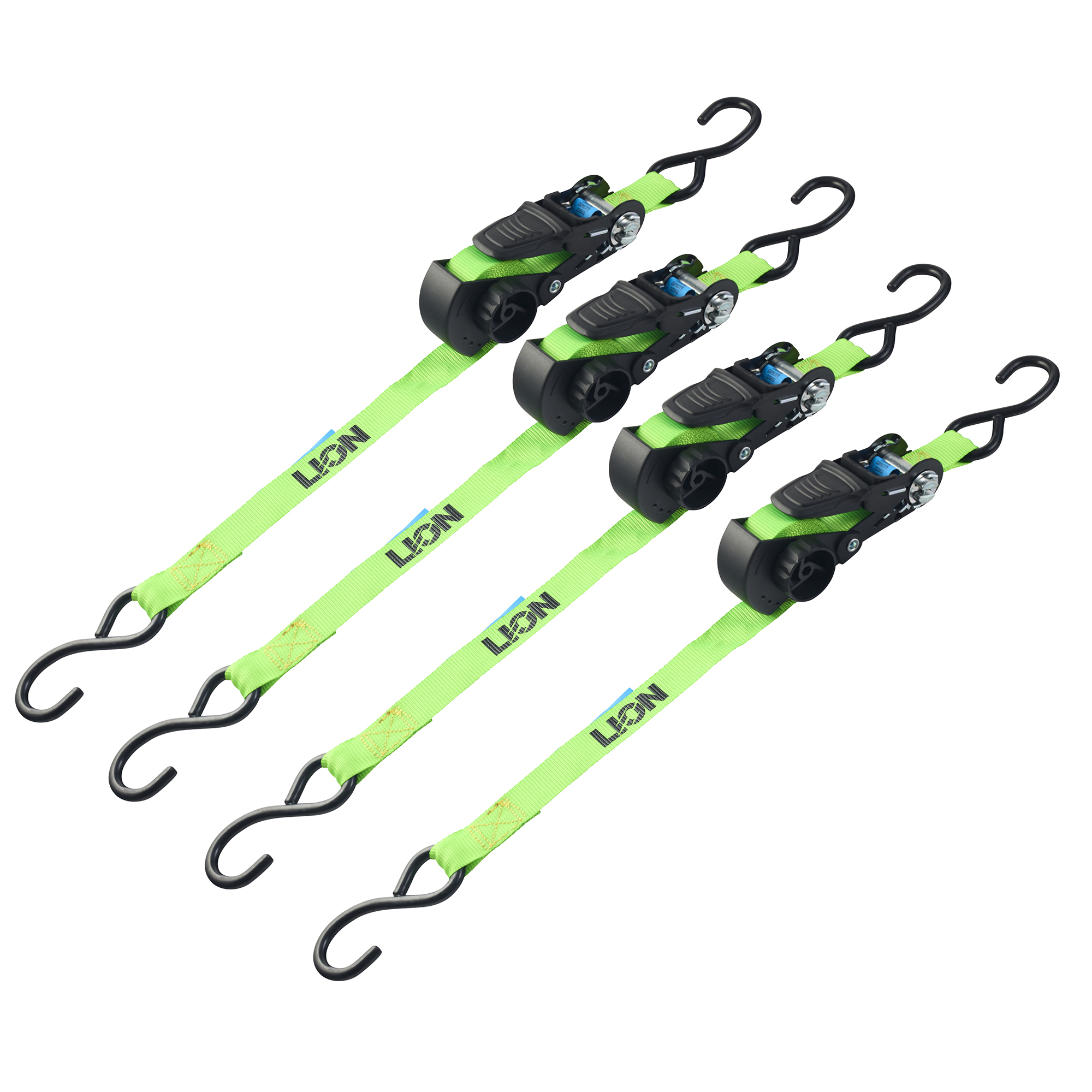 4 piece. Lashing Capacity: 225kg. Size: 25mm x 4 metre polyester webbing strap adjustable from 1.22 to 4 metres. Non-slip coated ratchet handles with easy thumb lock release. Vinyl coated J hooks.