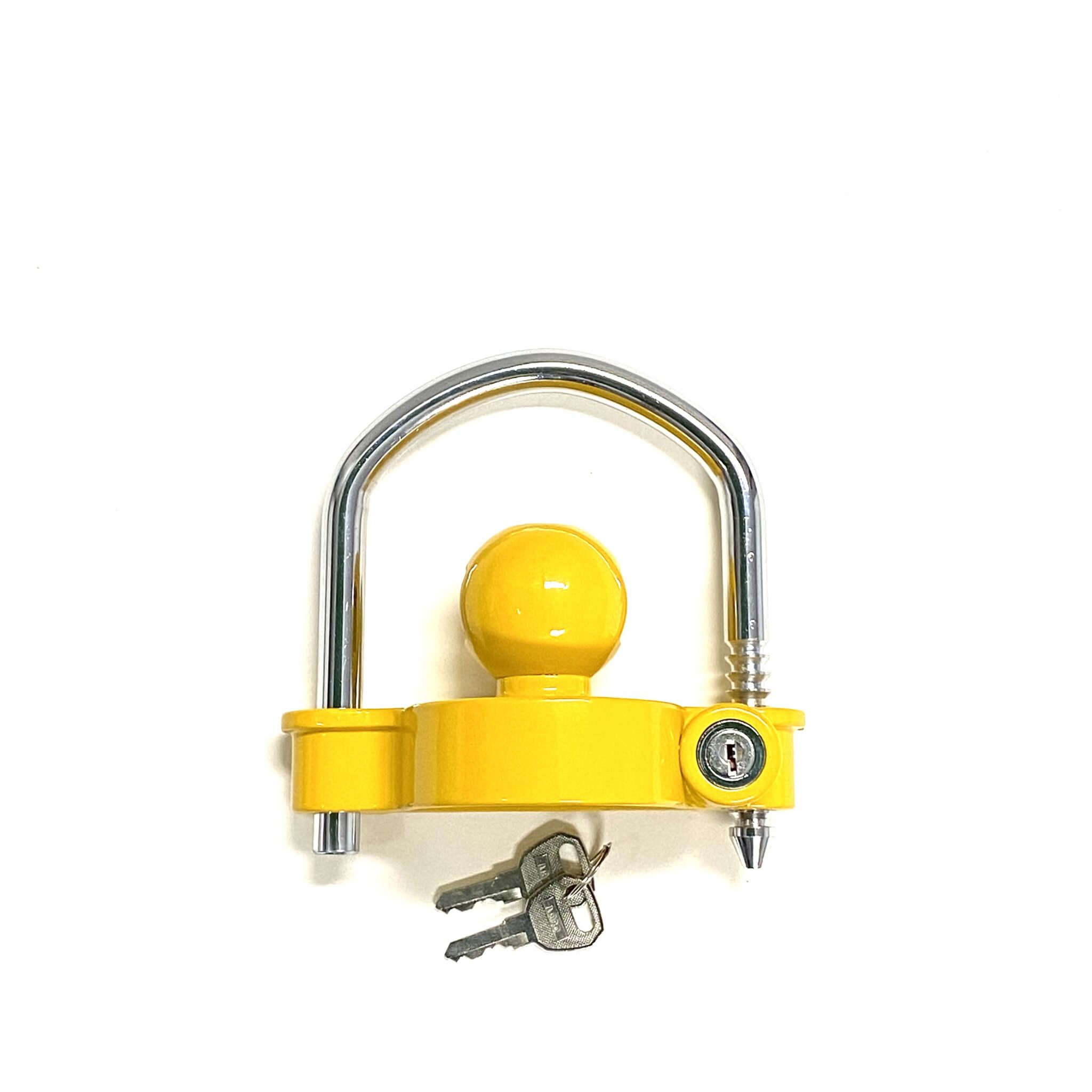 easily fitted lock which will keep your trailer or caravan safe whilst parked. The yellow lock is highly visible